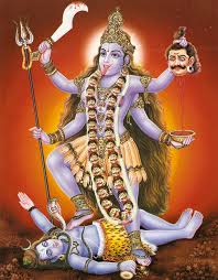 Kali è una dea considerata un aspetto di Durga, la manifestazione potente della Madre Divina, la Shakti come viene chiamata nella tradizione yogica. E’ lei che ha ucciso il dèmone Raktabij, che rappresenta la moltitudine dei desideri egoici. Questi desideri terreni distolgono il praticante dal seguire il sentiero del Dharma.