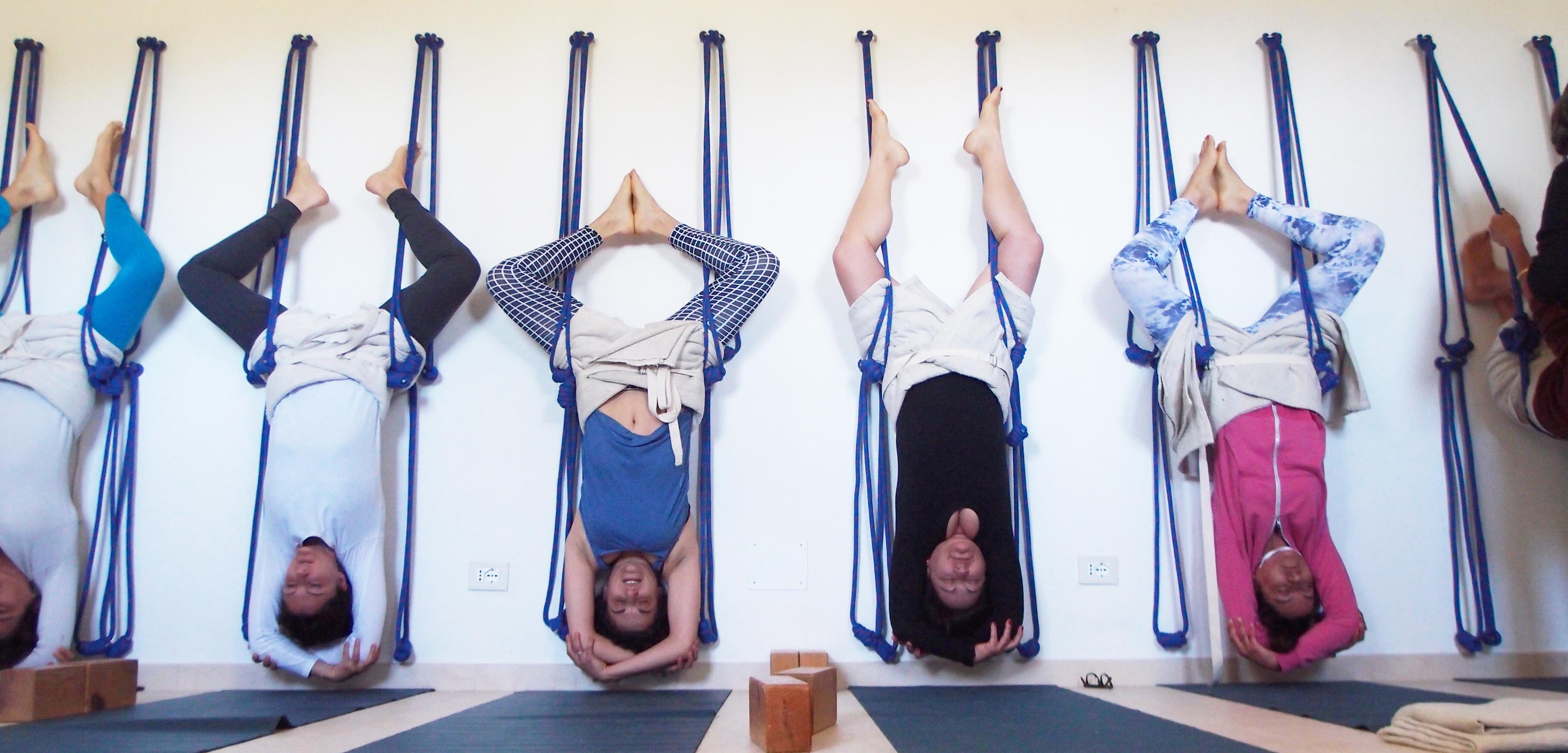 Cari amici dello yoga oggi prendiamo in esame uno dei props più importanti nella pratica dello yoga Iyengar: le cinte di sospensione al soffitto, per praticare Shirshasana senza dover gravare con il peso del corpo sul collo. Non tutti gli studenti sono in grado di praticare Shirshasana al centro della stanza e indipendentemente, e questo a causa di svariate problematiche fisiche che impediscono di eseguire l’asana in maniera classica: patologie cervicali, spalle con problemi articolari, ernie al disco e non ultima la paura di eseguire la posizione senza un supporto che aiuti a superare questo ostacolo mentale.